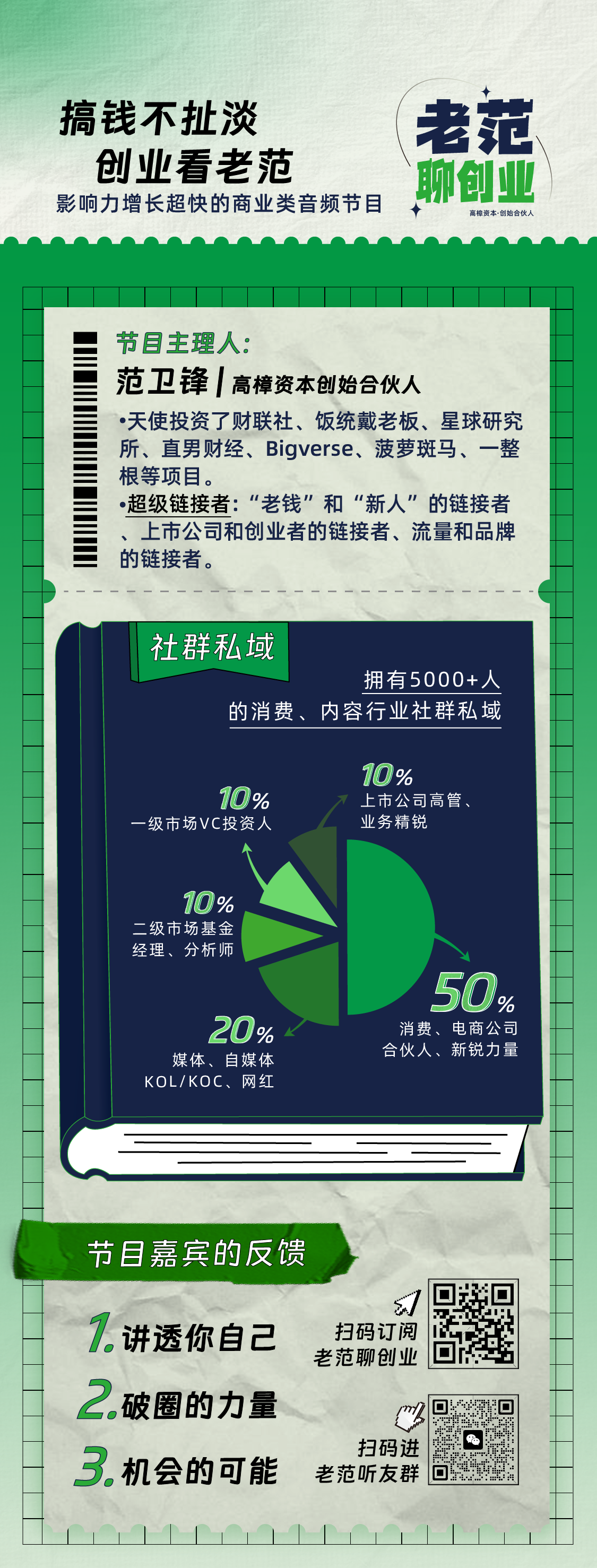 人生的大部分机遇来自于链接,作为“老钱”和“新人”、上市公司和创业者、流量和品牌的链接者,我们开启了听友群。