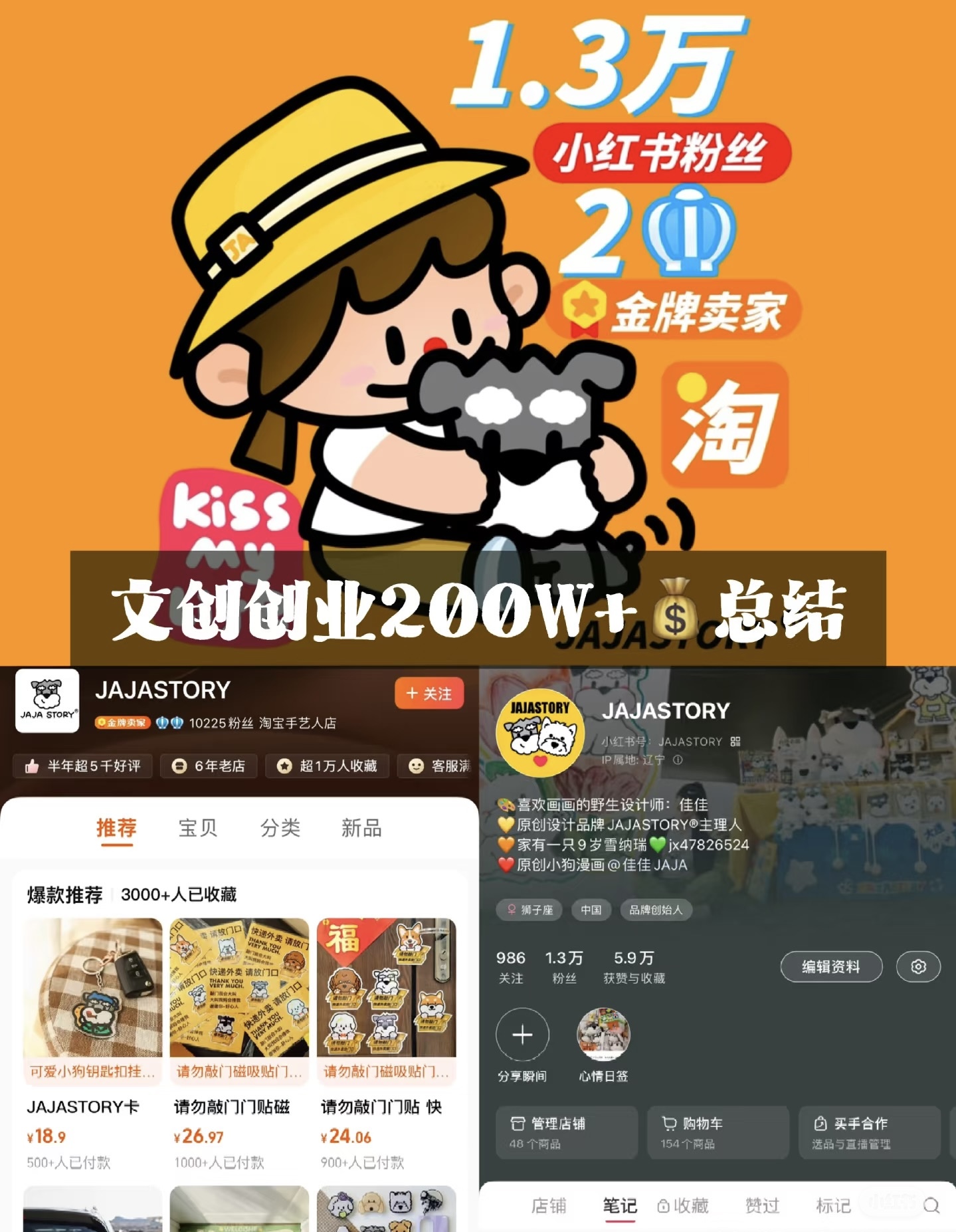 佳佳:90 后创业宝妈,从给女儿做手工起步,4 年淘宝店变现 300 多万,还和三福联名,打造原创 IP。她带免费文创创业课来啦,会分享从 0 做文创的干货,帮大家避坑搞钱!(小红书:JAJA佳佳)