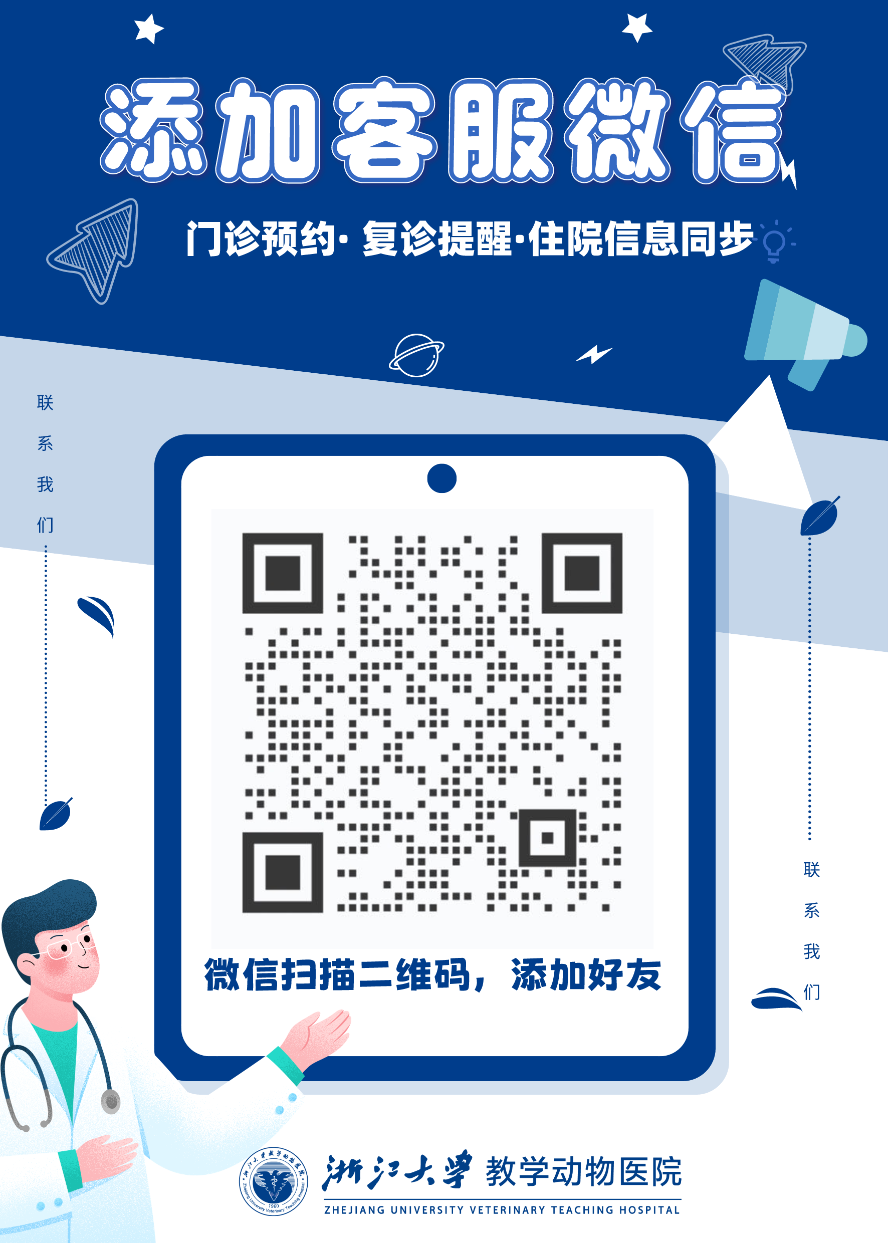我们也给大家申请到了听友福利,扫码添加浙江大学教学动物医院客服,回复【浙里有艺思】可购买专属优惠体检套餐!