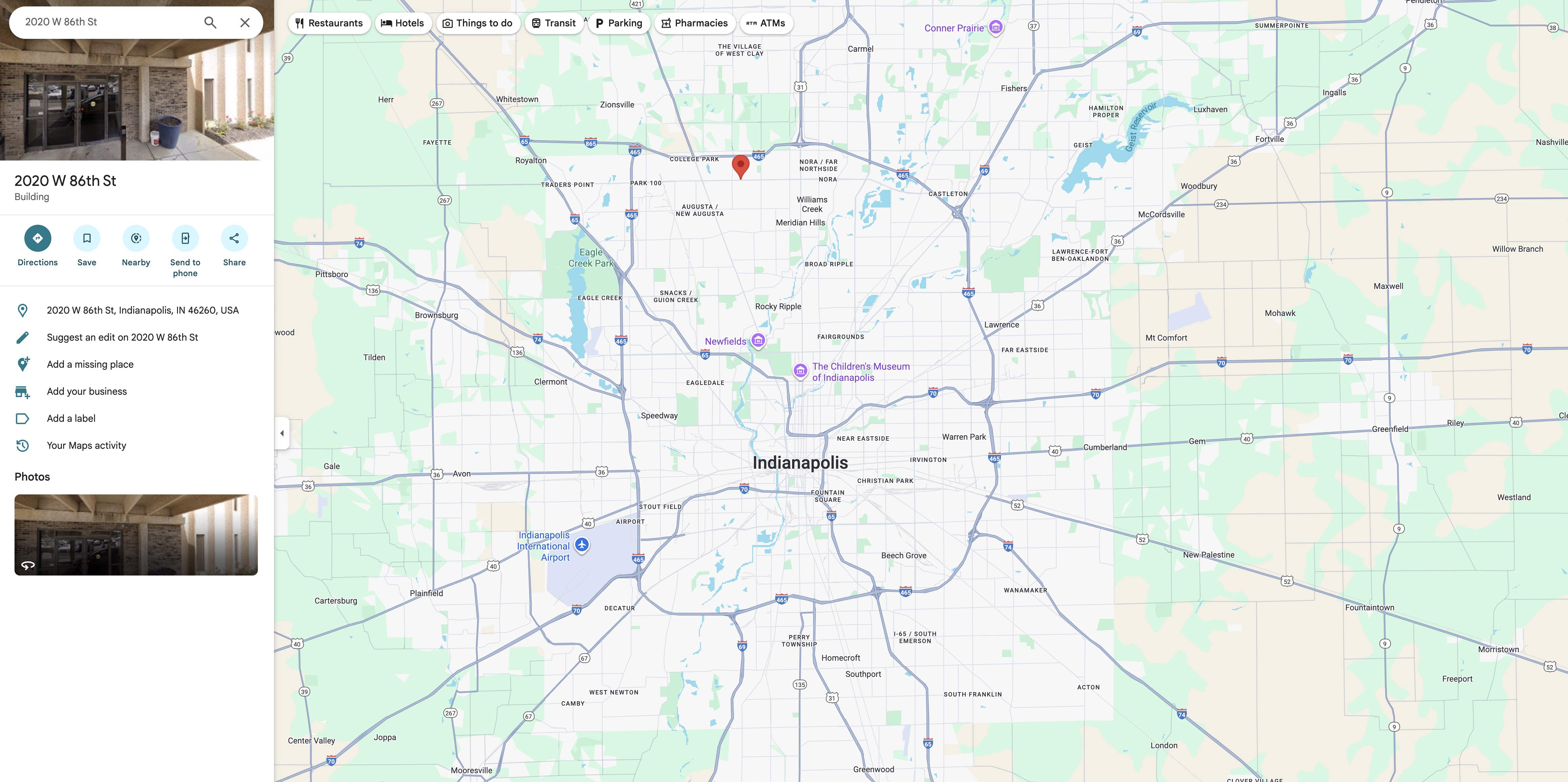 位于 Indianapolis 的 Dr. Cline 的诊所所在位置(Pinned)