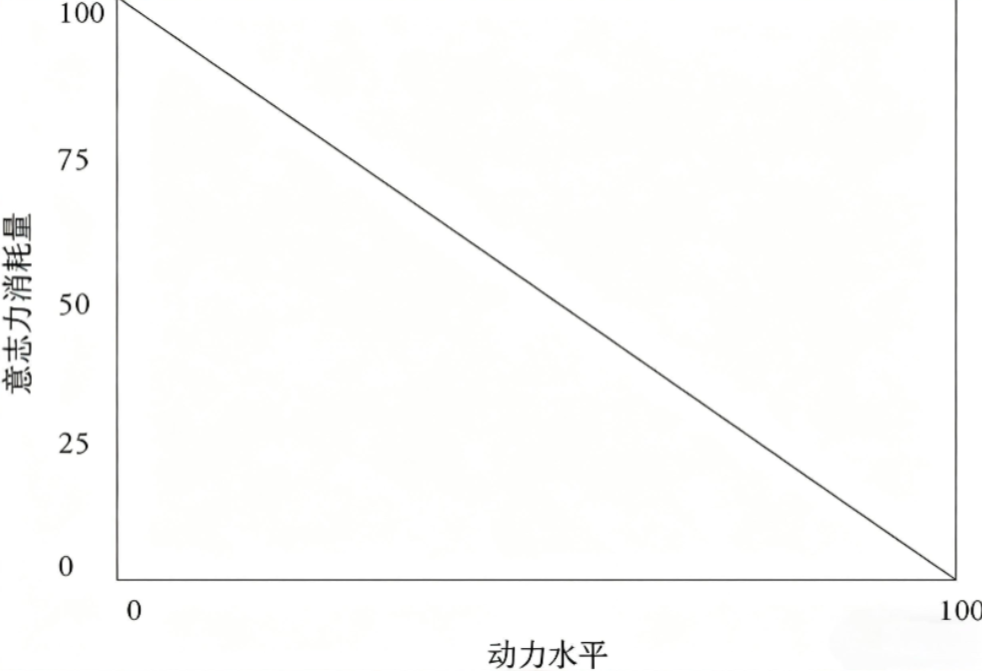 X轴是动力,Y轴是意志力消耗量,动力和意志力的消耗为一个负相关、此消彼长的关系。