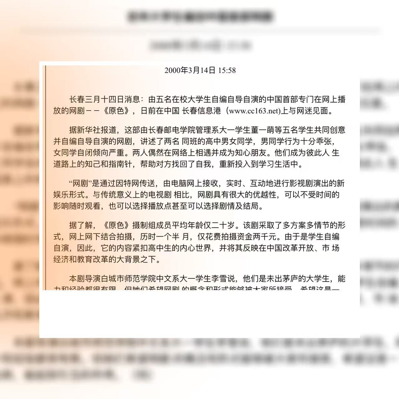 他曾在2000年拍摄中国第一部网剧