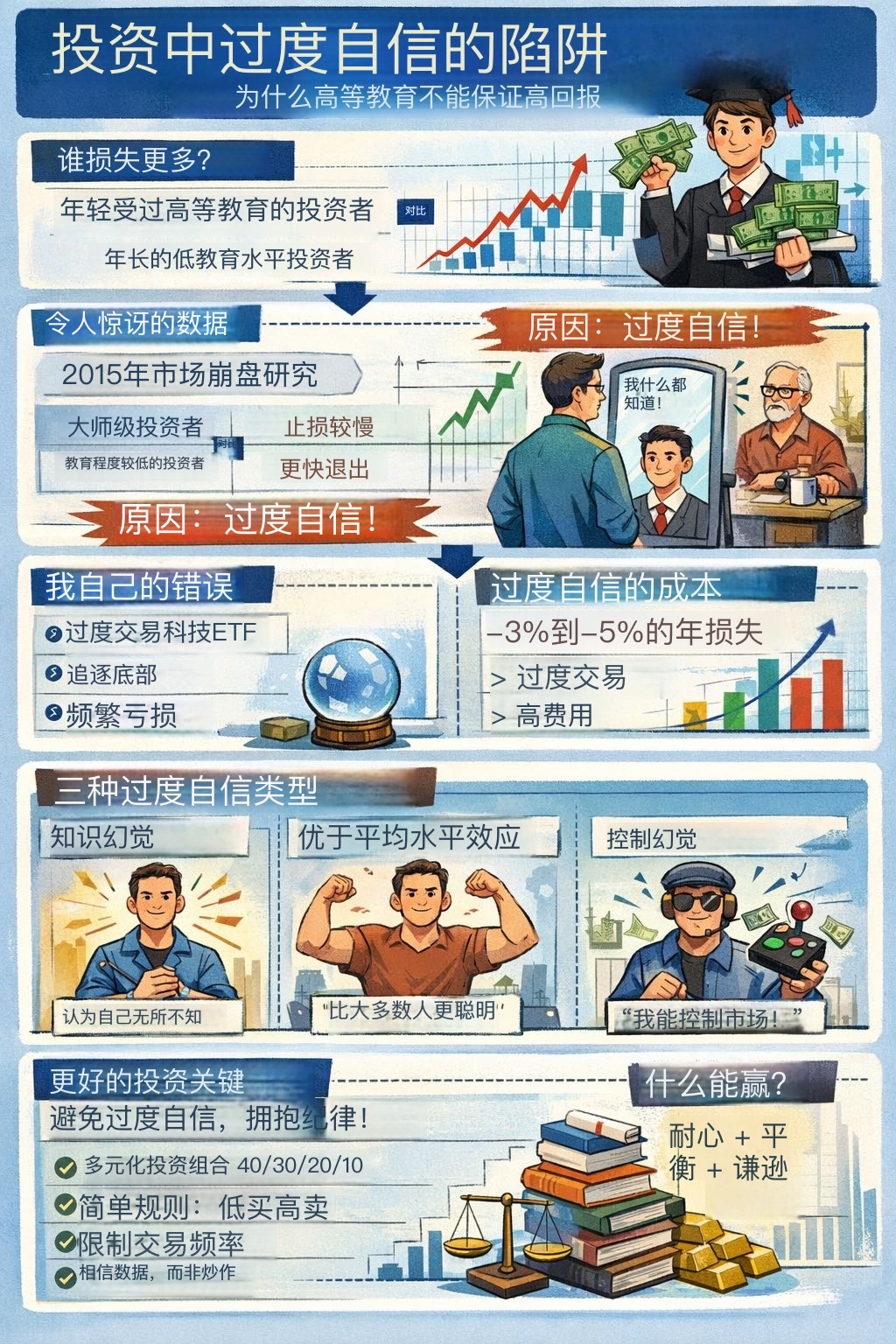 为什么聪明人总在股市交学费?高学历究竟是投资的护城河,还是亏损的加速器?本期节目深度拆解“精英投资者的傲慢”,揭秘为何最频繁交易的账户每年损失6.5%的残酷真相。带你识破行为金融学的心理陷阱,学会在波动中“无为而治”。